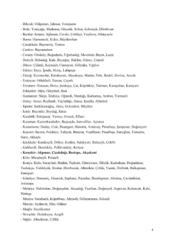 - Karabük: Eskipazar, Yenice, Ovacık, Eflani