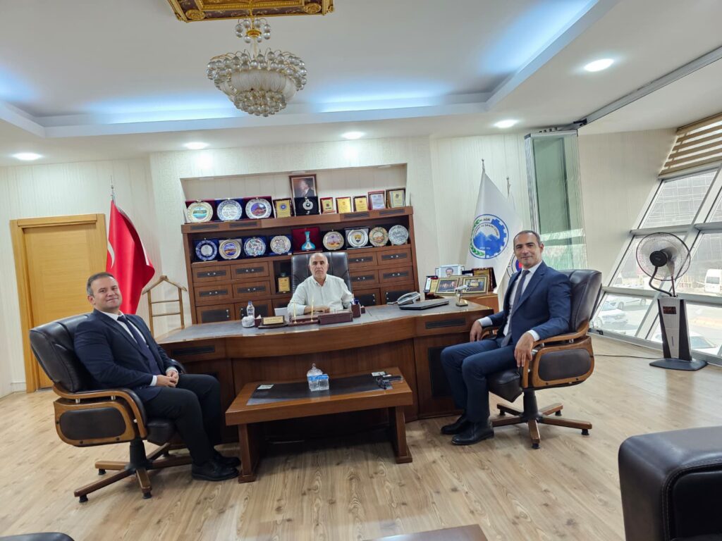 Vakıfbank Erzurum Bölge Müdürü Alptürk Öner CEYLAN,Ağrı Şube Müdürü Erdem AĞBULUT Ağrı Ticaret ve Sanayi Odası Yönetim Kurulu Başkanı Saim ALPASLAN’ı makamında ziyaret ettiler.Nazik ziyaretleri için kendilerine teşekkür ederiz.