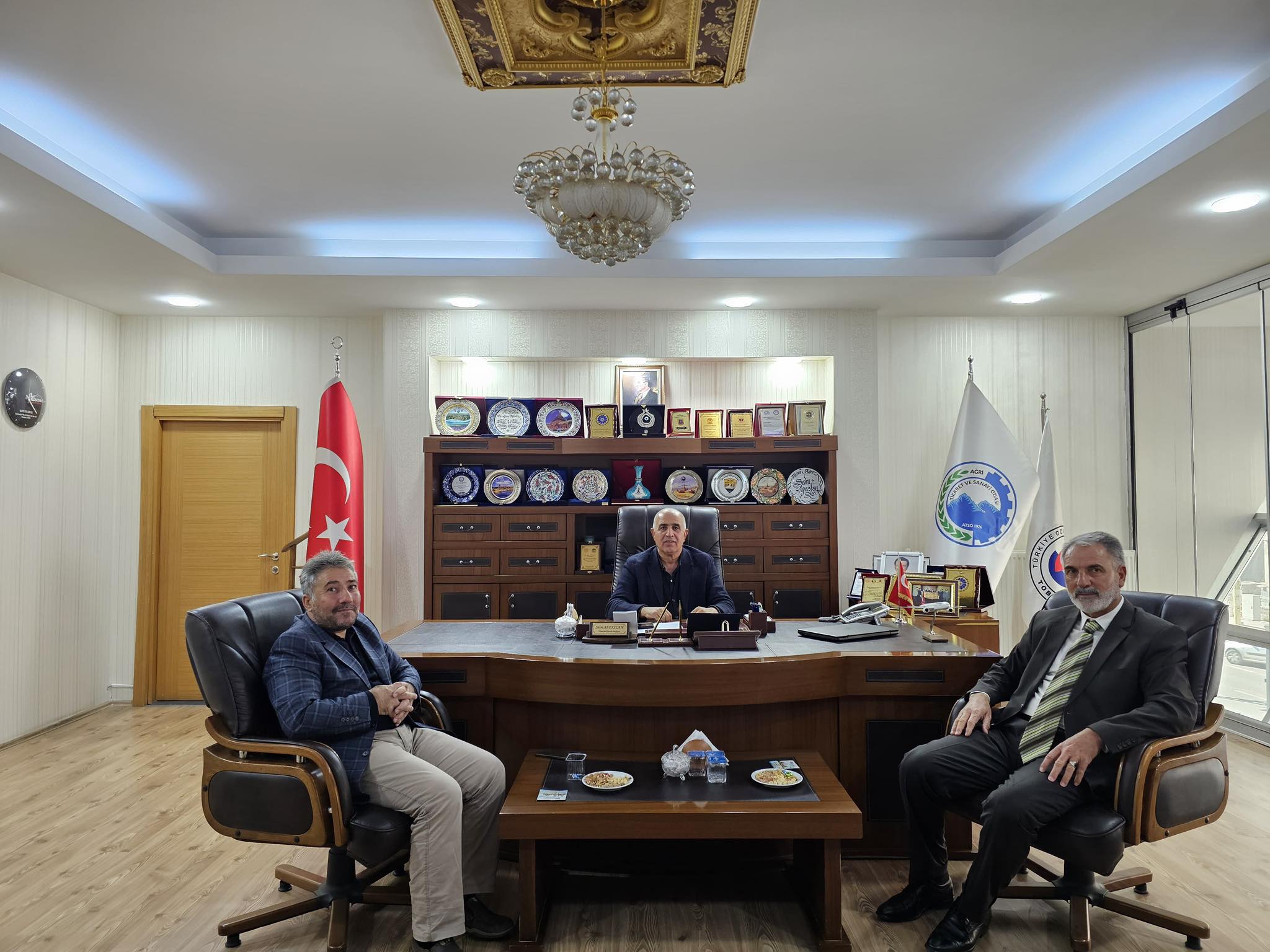 Adalet ve Kalkınma Partisi Tutak ilçesi Kurucu Başkanı Reşit ÇELİK ,Önceki dönem Ağrı Gençlik ve Spor İl Müdürü Cihan DEMİR Ağrı Ticaret ve Sanayi Odası Yönetim Kurulu Başkanı Saim ALPASLAN’ı makamında ziyaret ettiler. Nazik ziyaretleri için kendilerine teşekkür ederiz.