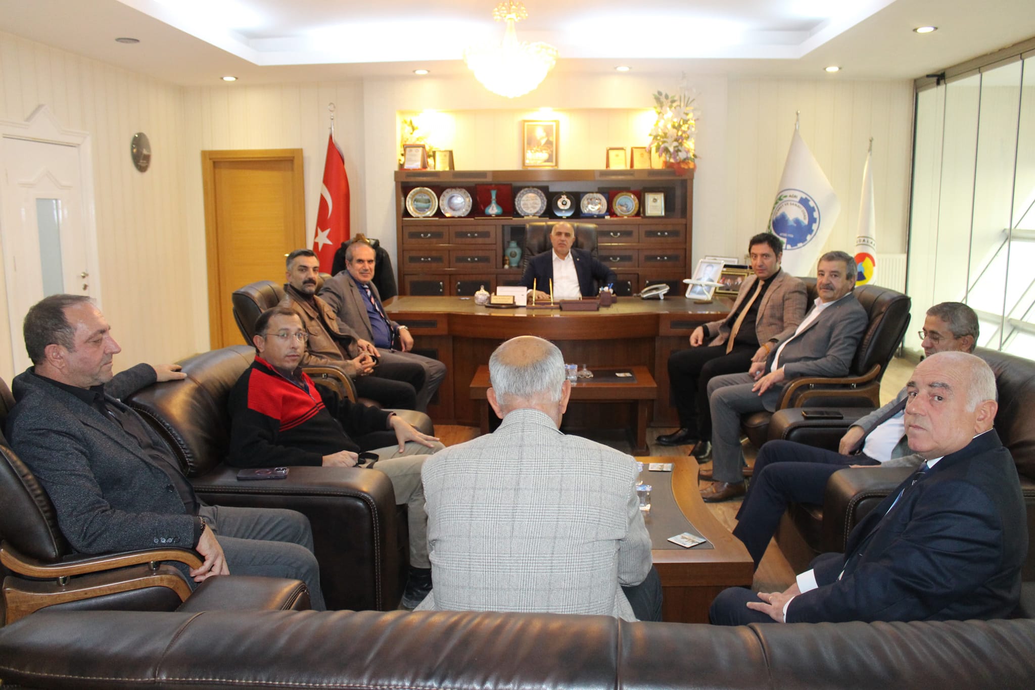 Ağrı Şeker Fabrikası Müdürü Sayın Kürşat ERDOĞAN ve beraberindeki heyet; Ağrı Ticaret ve Sanayi Odası Yönetim Kurulu Başkanı Saim ALPASLAN, Meclis Başkanı Vasip YILMAZ ve Yönetim Kurulu Üyelerimizi ziyaret ettiler. Nazik ziyaretlerinden dolayı kendilerine teşekkür eder çalışmalarında başarılar dileriz.