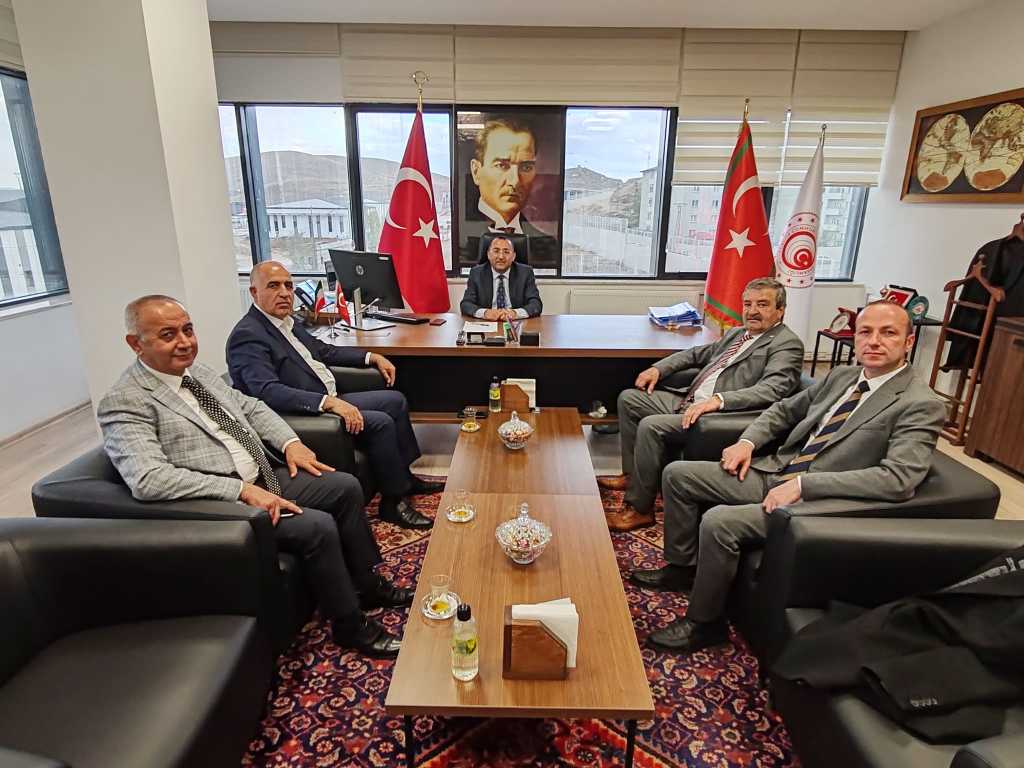 Ağrı Ticaret ve Sanayi Odası Yönetim Kurulu Başkanı Saim ALPASLAN ve Meclis Başkanı Vasip YILMAZ; Gürbulak Gümrük ve Dış Ticaret Bölge Müdürü Sayın Metin GÜRBÜZ’ü makamında ziyaret ettiler. Günübirlik ve tır taşımacılığı yapan vatandaşlarımızın; kilometrelerce oluşan tır kuyruklarından kaynaklanan sorunlarını çözmek çözmek için istişarelerde bulundular. Oluşan sıkıntıların; Ülkemiz genelinde meydana gelen sistemsel hatalardan kaynaklandığı ve sorunların en kısa zamanda çözüme kavuşacağı bilgisine ulaşıldı. Misafirperverliklerinden ve göstermiş oldukları hassasiyetlerden dolayı Sayın GÜRBÜZ’e teşekkür eder çalışmalarında başarılar dileriz.