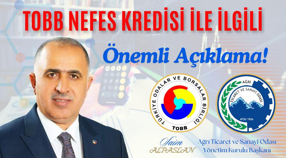 TOBB NEFES KREDİSİ İLE İLGİLİ AĞRI TİCARET VESANAYİ ODASI YÖNETİM KURULU BAŞKANI SAİM ALPASLAN’DAN ÖNEMLİ AÇIKLAMA;